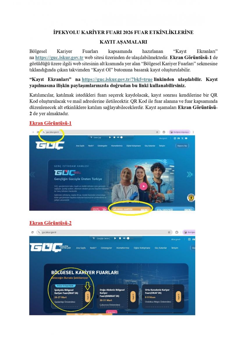 • İPEKYOLU KARİYER FUAR ETKİNLİKLERİ"NE KAYIT AŞAMALARI